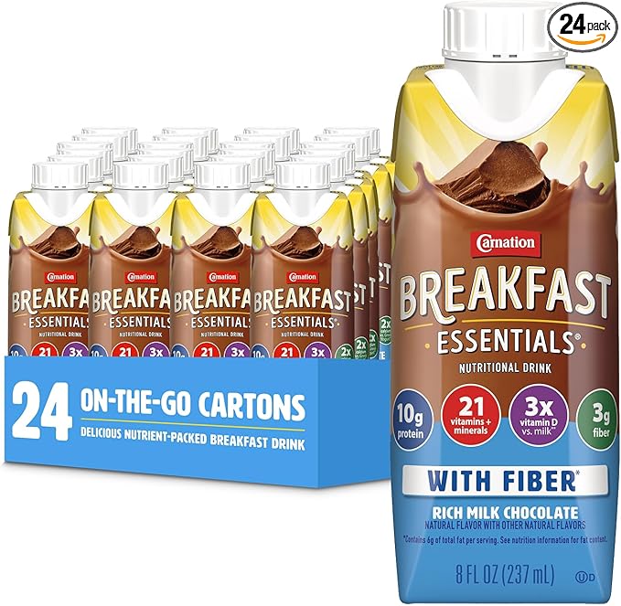 - NUTRITIONAL BREAKFAST DRINK: Carnation Breakfast Essentials Nutritional Drinks make it easy to start your day with key nutrients at breakfast.HIGH-QUALITY PROTEIN: Each 8 fl oz serving is packed with 10 g of high-quality protein to help build & maintain muscle.VITAMINS & MINERALS: Provides an excellent source of 21 vitamins & minerals to help meet daily nutritional needs and fill nutritional gaps.KEY NUTRIENTS FOR IMMUNE SUPPORT: Carnation Breakfast Essentials Nutritional Drinks contain 100% daily value (DV) of vitamin C and 50% DV of vitamin D, key nutrients for immune support.NO ARTIFICIAL flavors, colors or sweeteners. Also gluten free and kosher.